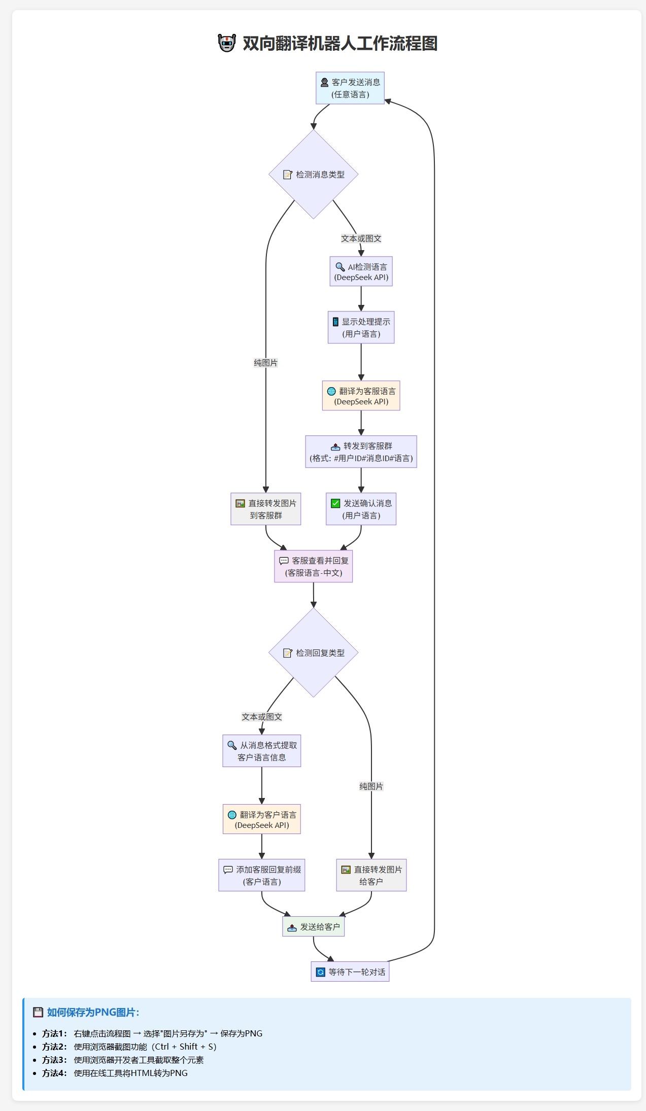 2.将客户消息翻译为客服配置的指定语言,不管客户消息是哪个国家的语言,只要是Deepseek能识别的语言都可以。