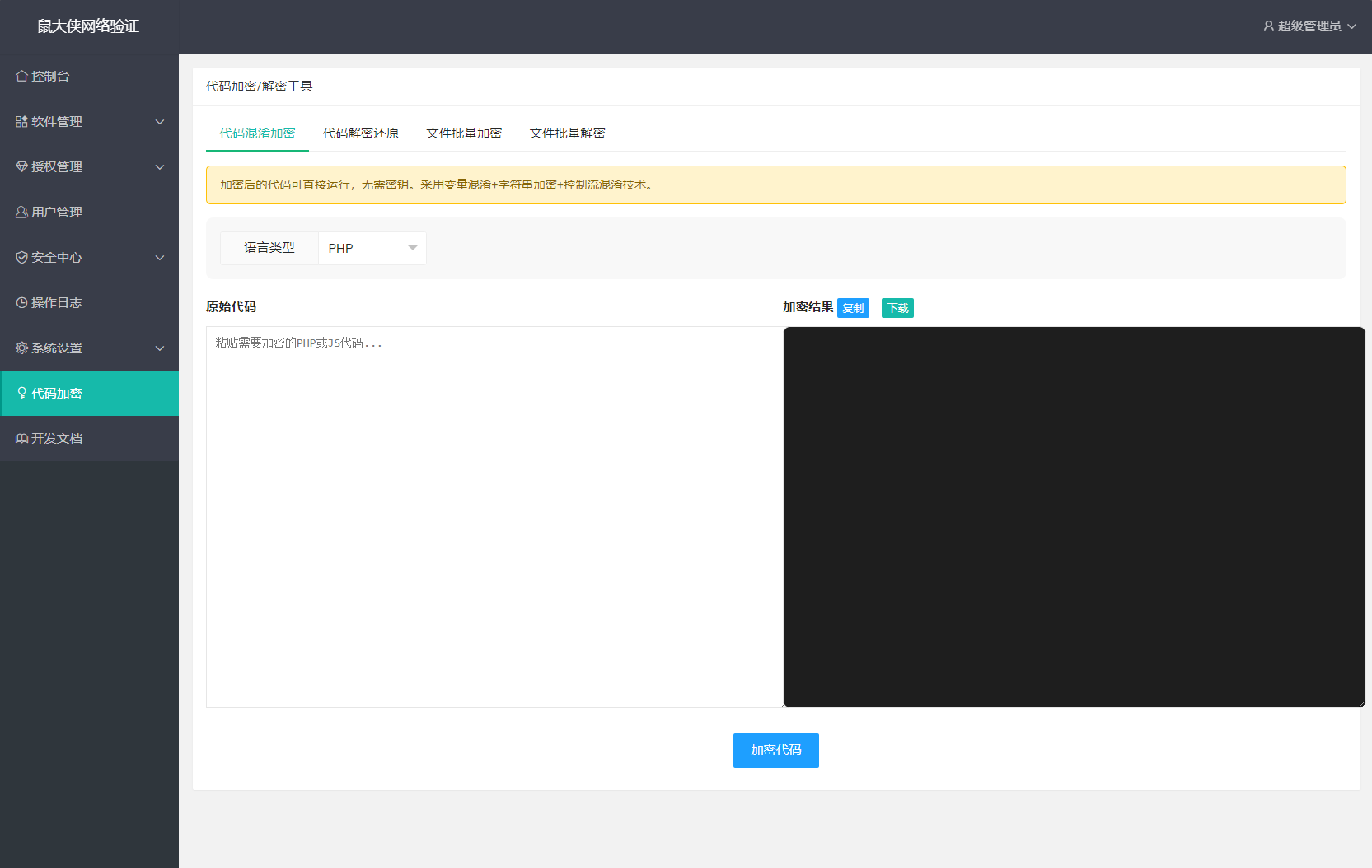 鼠大侠网络验证系统源码 一机一码授权验证 全开源